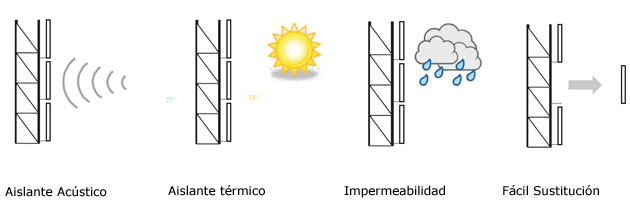 En exteriores, el empleo del vidrio destaca en fachadas ligeras a partir de la fijación de perfiles metálicos al muro exterior del edificio sobre los cuales se superpone un revestimiento de tipo laminar o en planchas, generando una cámara de aire entre el muro o fachada base y el aplacado externo empleado o nueva fachada ventilada actuando de protección contra los agentes externos. La fijación del vidrio en este tipo de fachada se resuelve mediante el uso de grapas de aluminio y adhesivo específico.